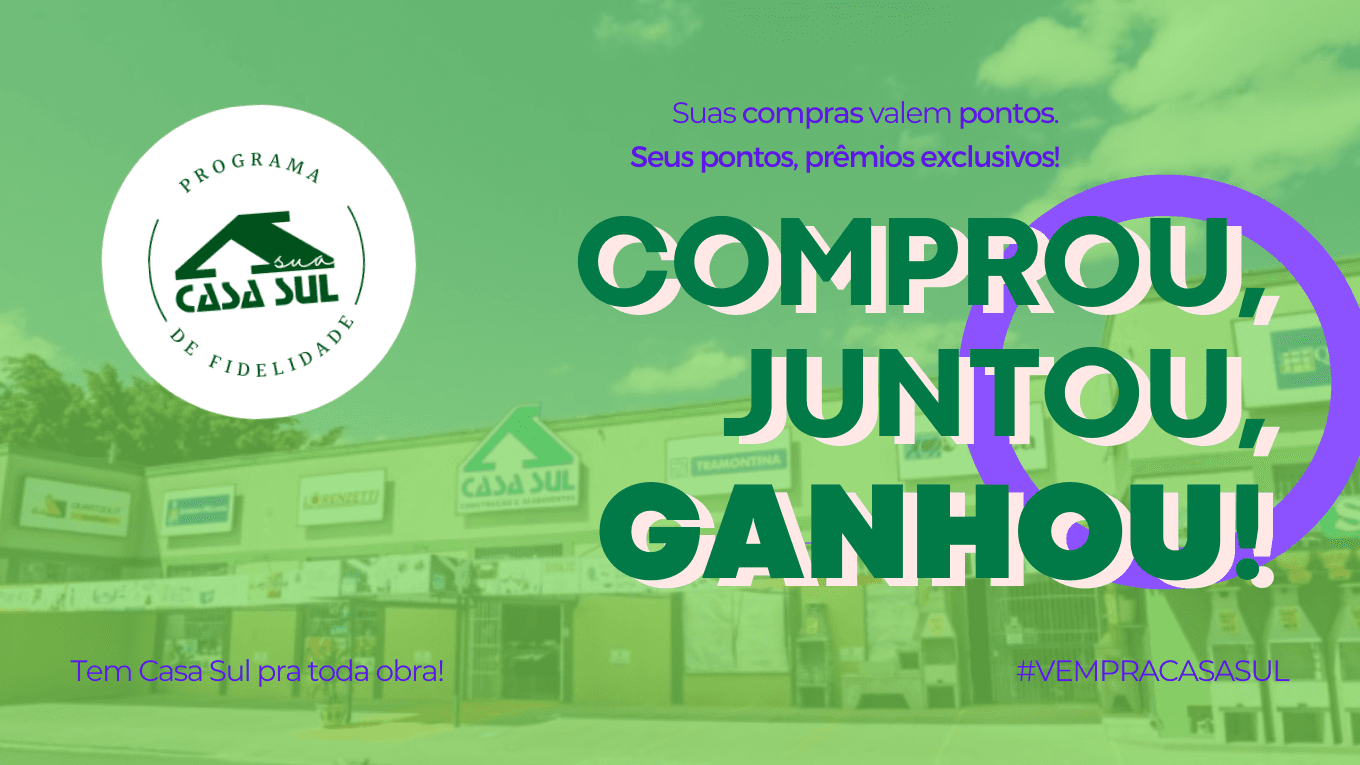 Participe gratuitamente do Sua Casa Sul fazendo seu cadastro abaixo e troque por vale-compras em nossa loja.